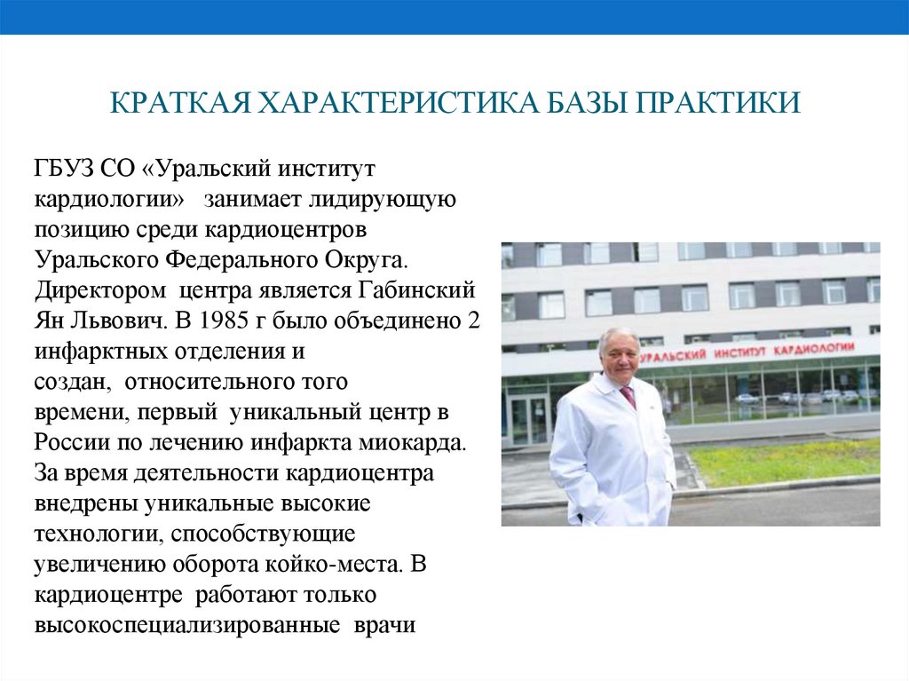 КРАТКАЯ ХАРАКТЕРИСТИКА БАЗЫ ПРАКТИКИГБУЗ СО «Уральский институт