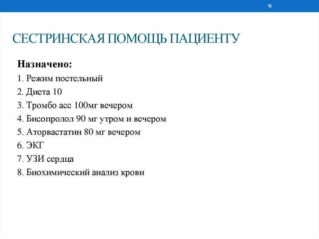 • Сестринскую помощь пациенту с ИМ оказали в течение 7 дней, было