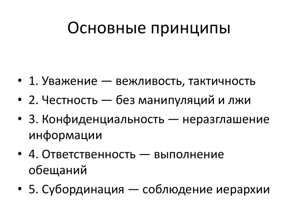 Основные принципы• 1. Уважение — вежливость, тактичность
