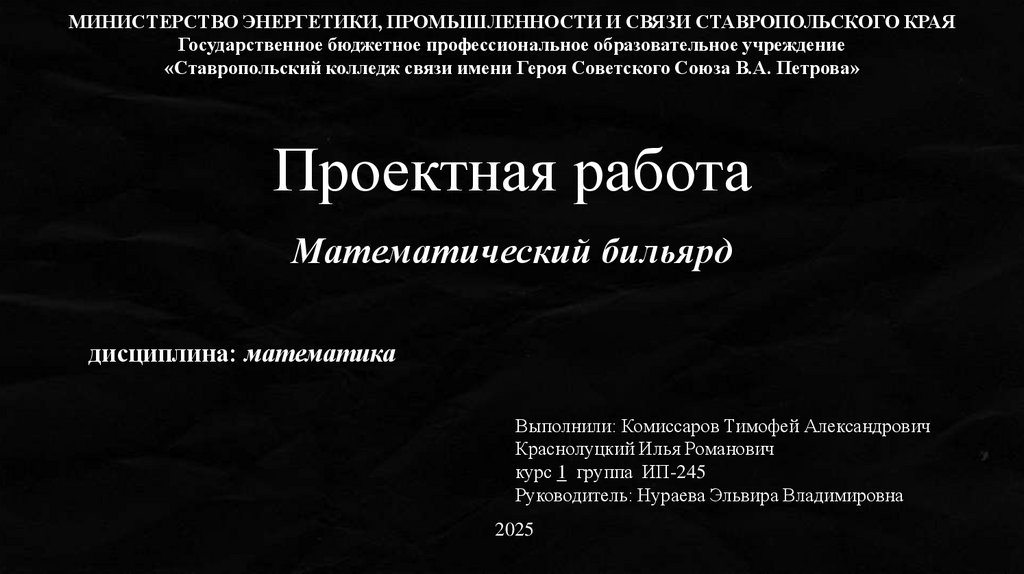 МИНИСТЕРСТВО ЭНЕРГЕТИКИ, ПРОМЫШЛЕННОСТИ И СВЯЗИ СТАВРОПОЛЬСКОГО КРАЯГосударственное бюджетное профессиональное образовательное учреждение