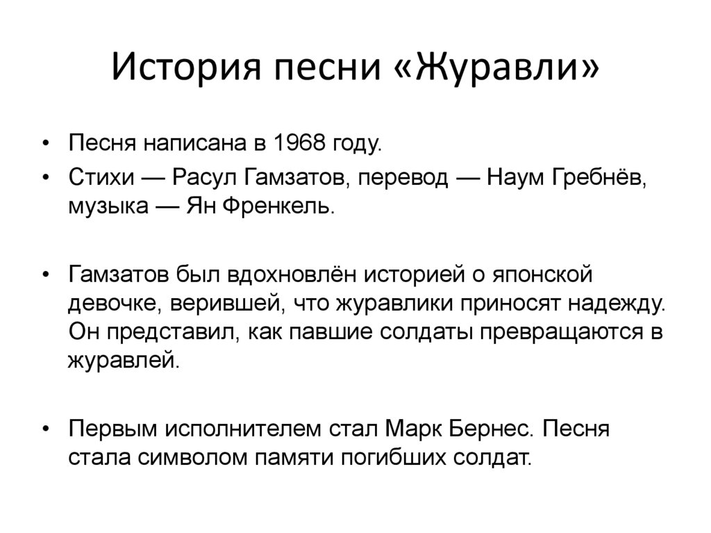История песни «Журавли»• Песня написана в 1968 году.