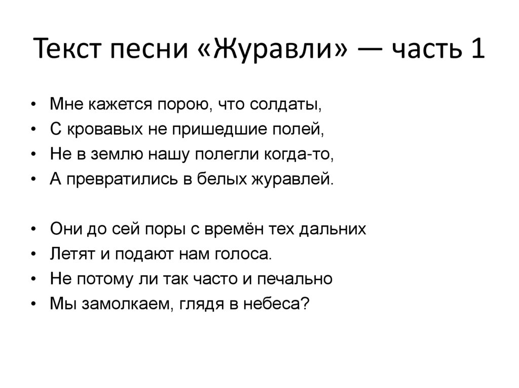 Текст песни «Журавли» — часть 1Мне кажется порою, что солдаты,