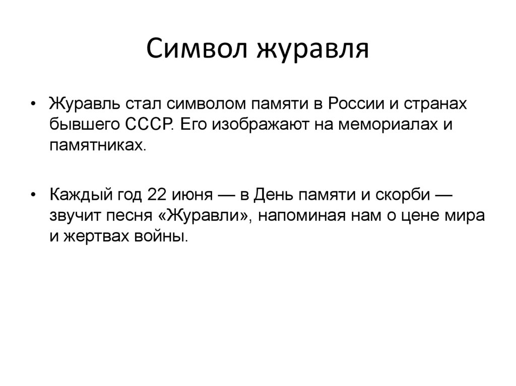 Символ журавля• Журавль стал символом памяти в России и странах