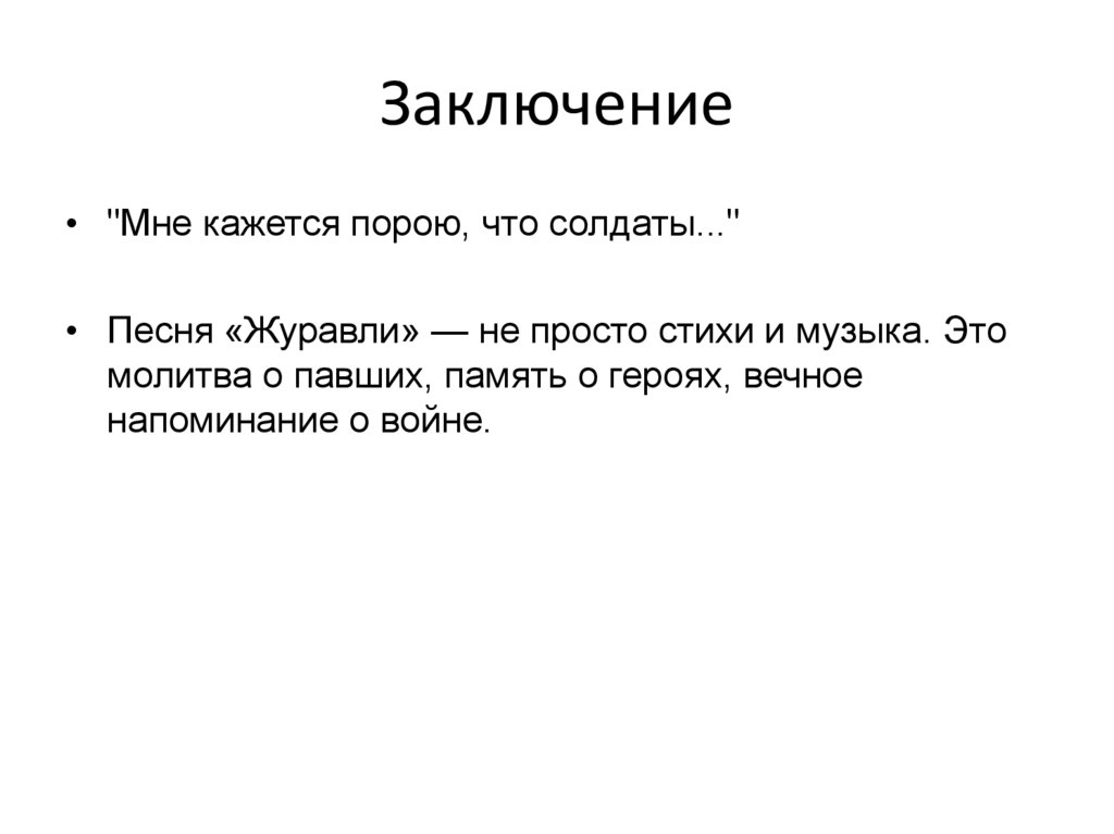 Заключение• "Мне кажется порою, что солдаты..."