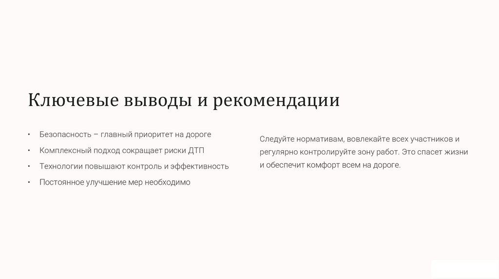 Ключевые выводы и рекомендацииБезопасность – главный приоритет на дороге