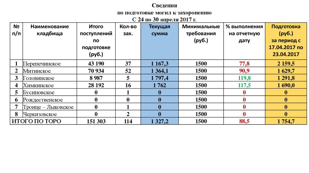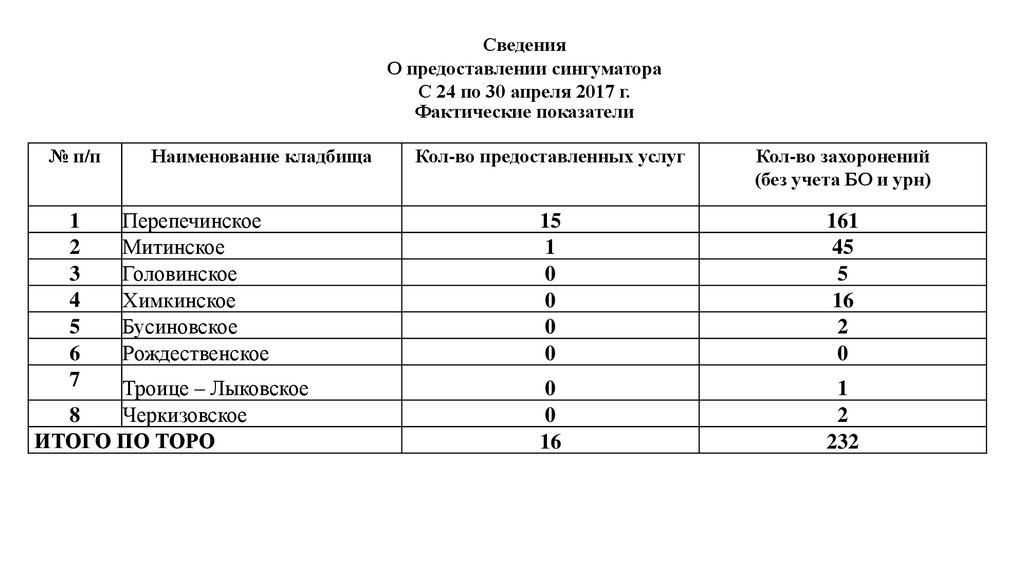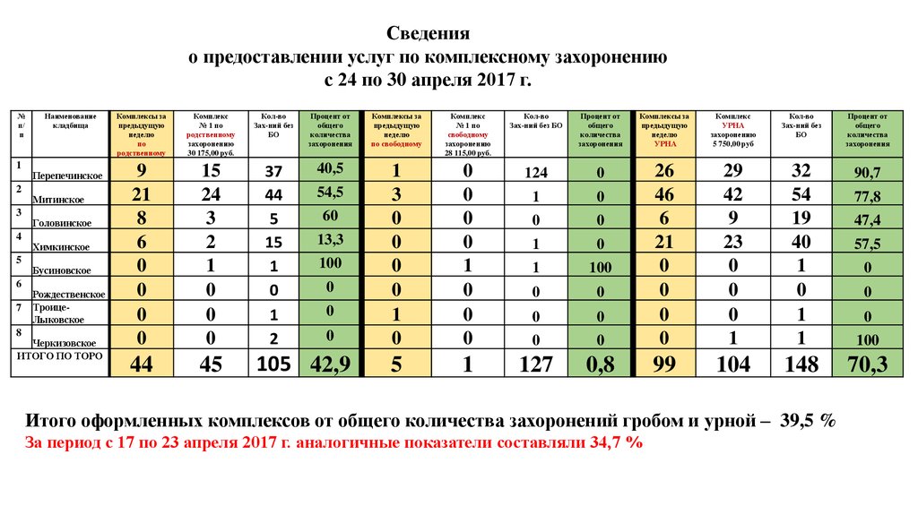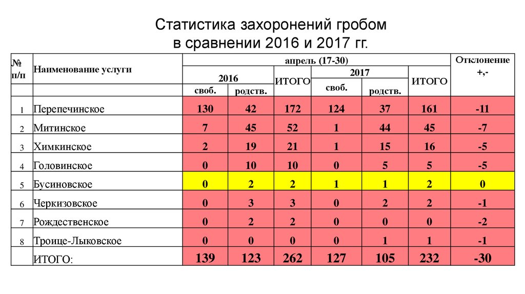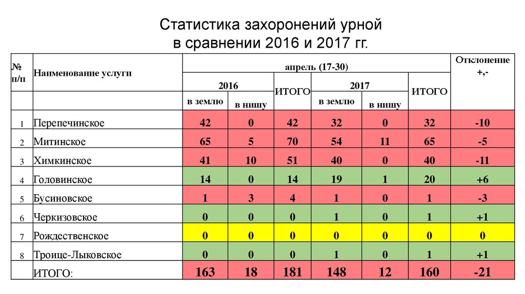 Статистика захоронений гробомв сравнении 2016 и 2017 гг.