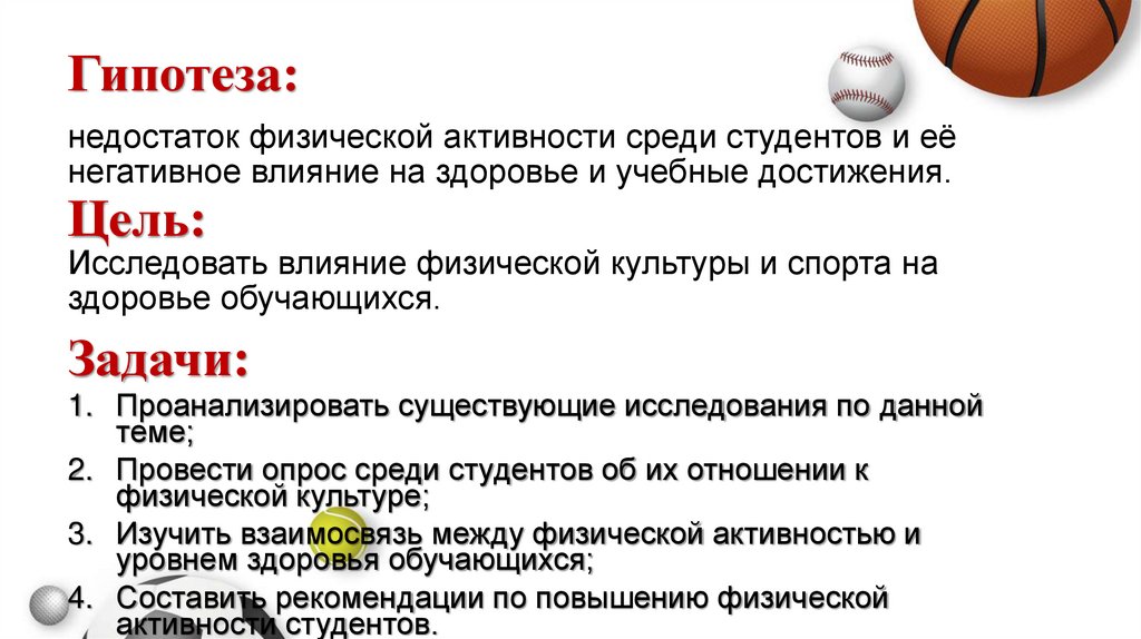• Занятия спортом улучшают здоровье• Дополнительные уроки физкультуры эффективны