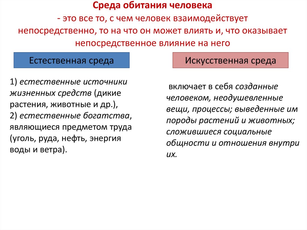 2. Среда обитания человека - это все то, с чем человек взаимодействует непосредственно, то на что он может влиять и, что оказывает