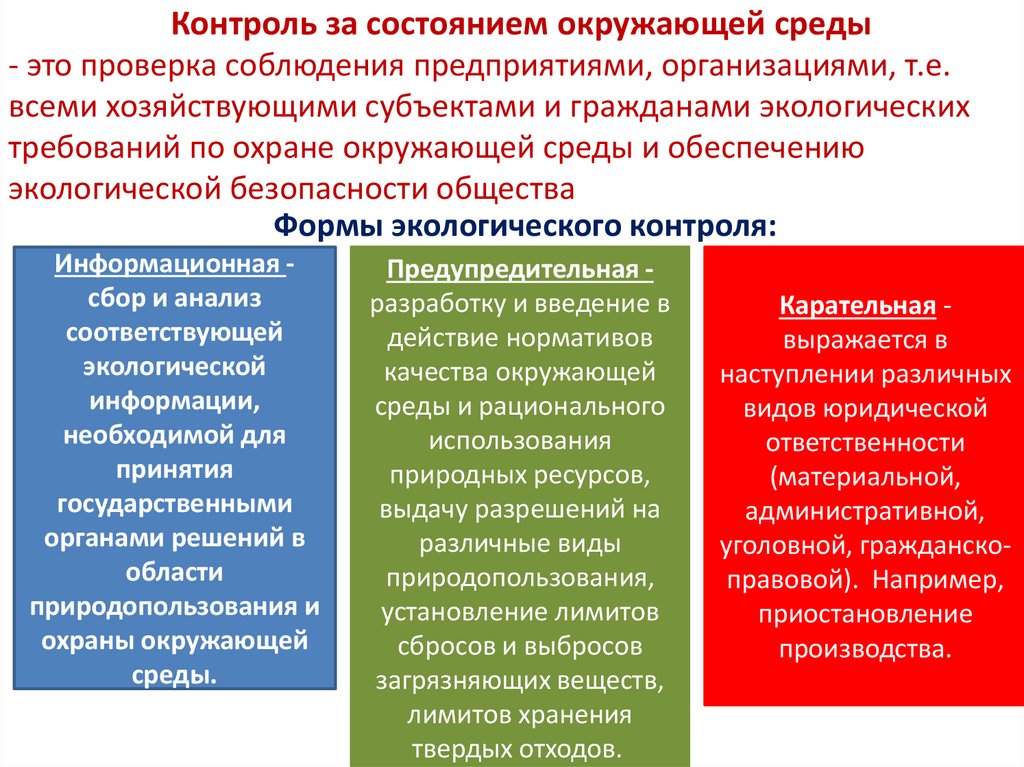 Контроль за состоянием окружающей среды- это проверка соблюдения предприятиями, организациями, т.е.