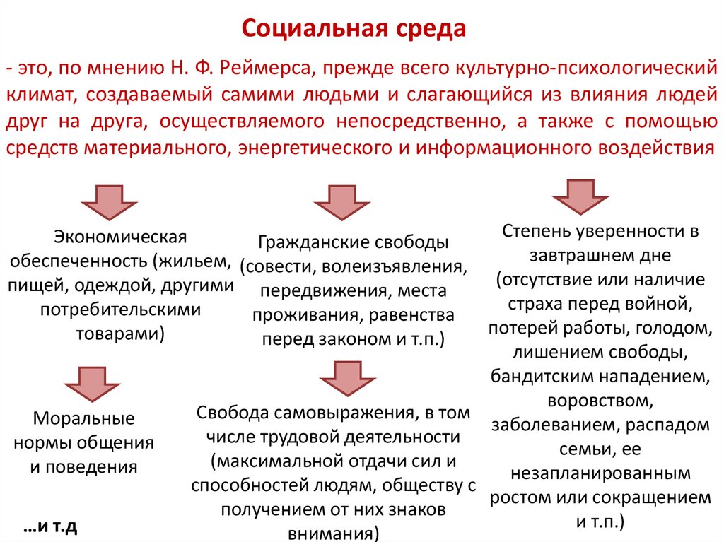 - это, по мнению Η. Ф. Реймерса, прежде всего культурно-психологическийклимат, создаваемый самими людьми и слагающийся из влияния людей