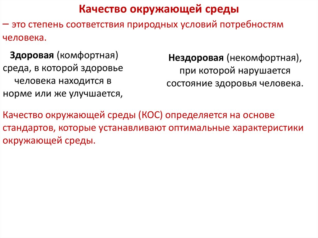 Качество окружающей среды– это степень соответствия природных условий потребностям