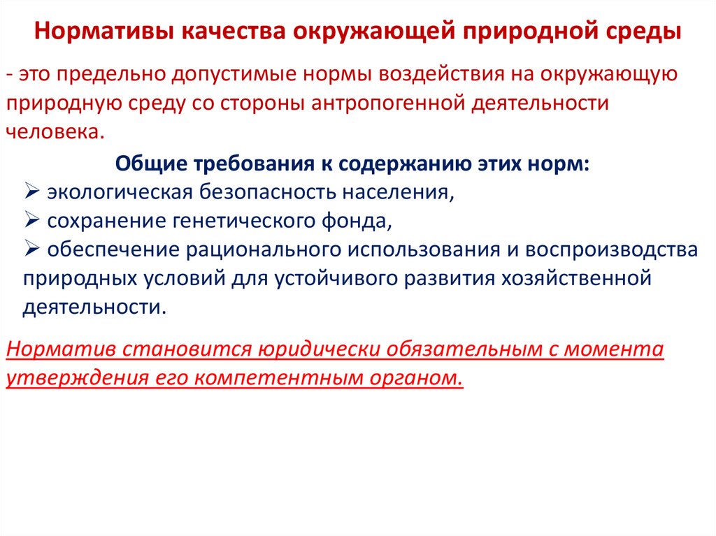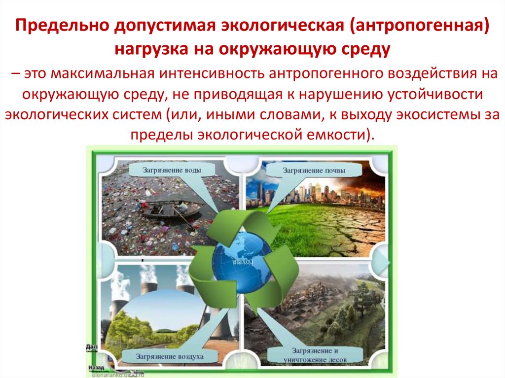 - это предельно допустимые нормы воздействия на окружающуюприродную среду со стороны антропогенной деятельности