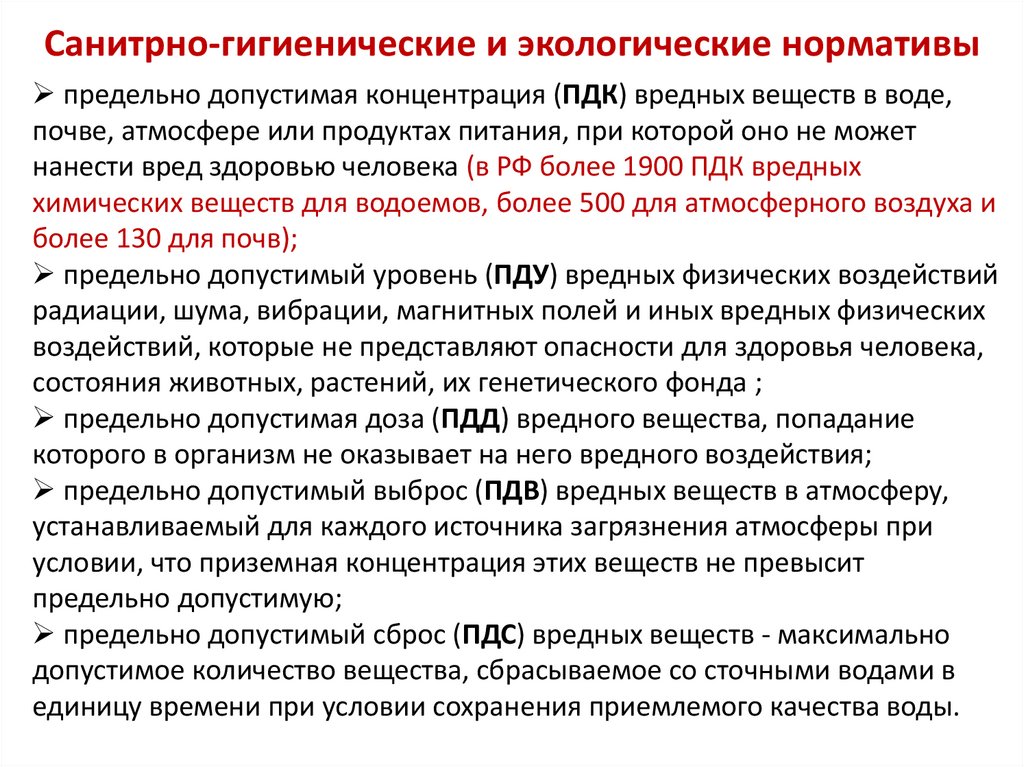 являются гигиенические нормативы - предельно допустимые концентрации (ПДК)