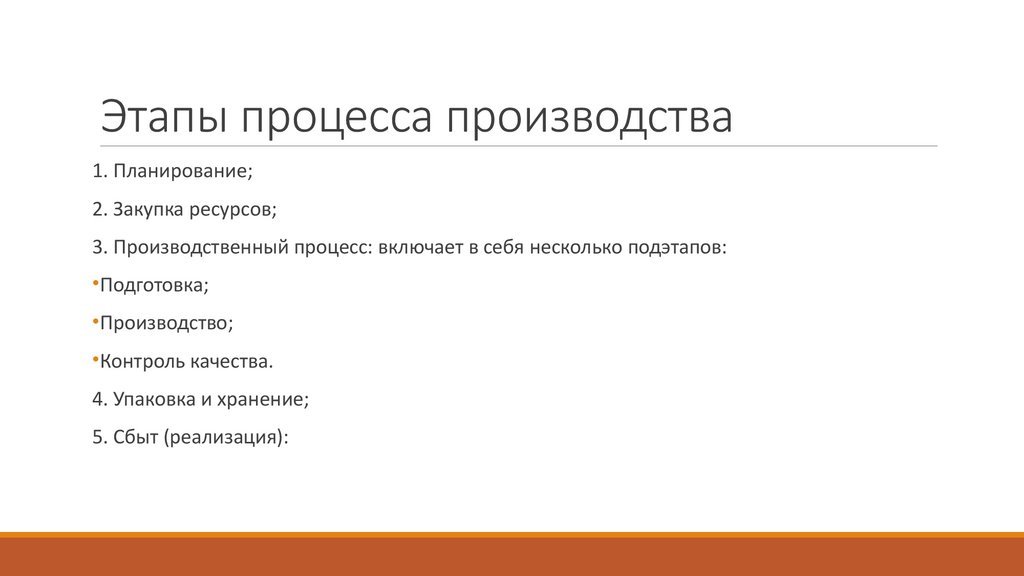 3. Производственный процесс: включает в себя несколько подэтапов: