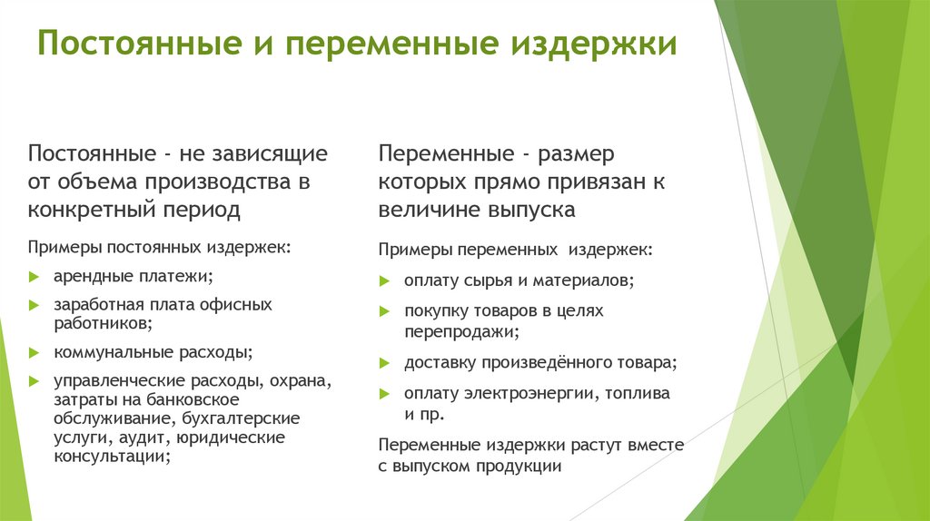 переменные и постоянные, прямые и косвенные, производственные и