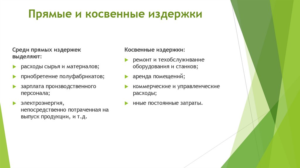 Прямые и косвенные издержкиСреди прямых издержек
