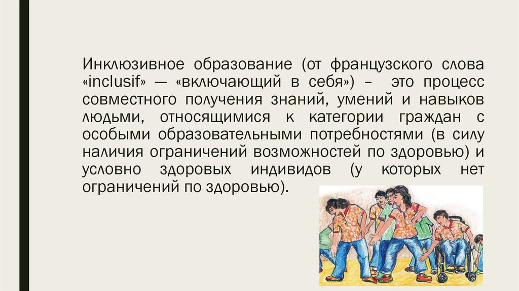 Инклюзивное образование (от французского слова«inclusif» — «включающий в себя») – это процесс