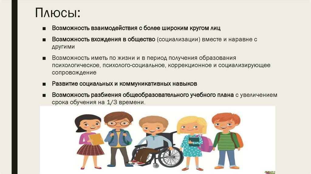 ■ Возможность взаимодействия с более широким кругом лиц■ Возможность вхождения в общество (социализации) вместе и наравне с