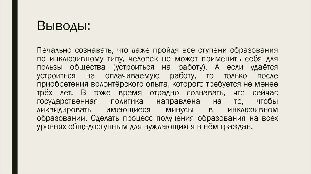 Печально сознавать, что даже пройдя все ступени образованияпо инклюзивному типу, человек не может применить себя для