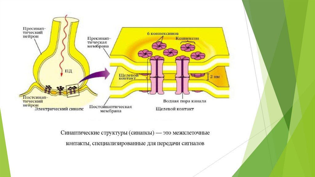 Синаптические структуры (синапсы) — это межклеточныеконтакты, специализированные для передачи сигналов