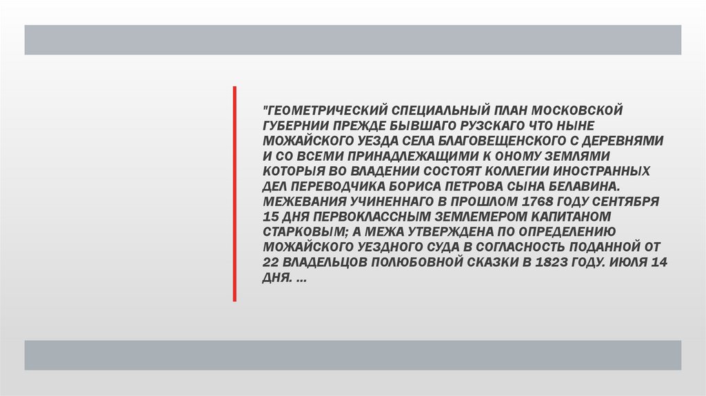 "ГЕОМЕТРИЧЕСКИЙ СПЕЦИАЛЬНЫЙ ПЛАН МОСКОВСКОЙГУБЕРНИИ ПРЕЖДЕ БЫВШАГО РУЗСКАГО ЧТО НЫНЕ