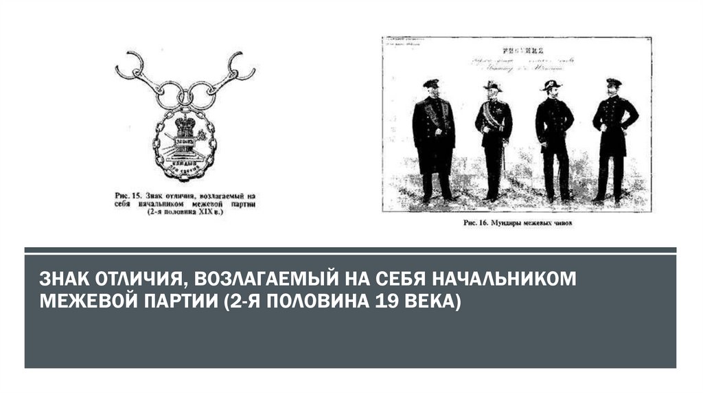 ЗНАК ОТЛИЧИЯ, ВОЗЛАГАЕМЫЙ НА СЕБЯ НАЧАЛЬНИКОММЕЖЕВОЙ ПАРТИИ (2-Я ПОЛОВИНА 19 ВЕКА)