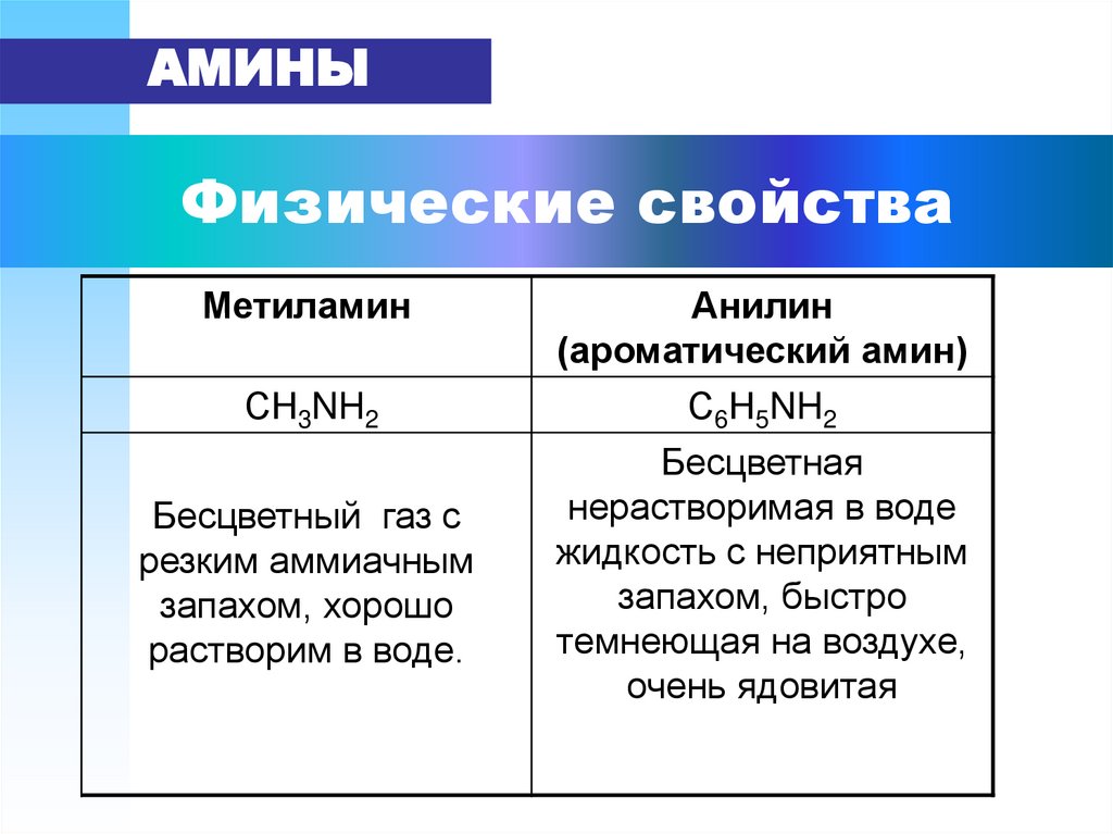 АМИНЫФизические свойства