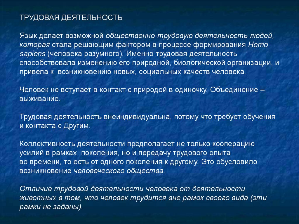 ТРУДОВАЯ ДЕЯТЕЛЬНОСТЬЯзык делает возможной общественно-трудовую деятельность людей,