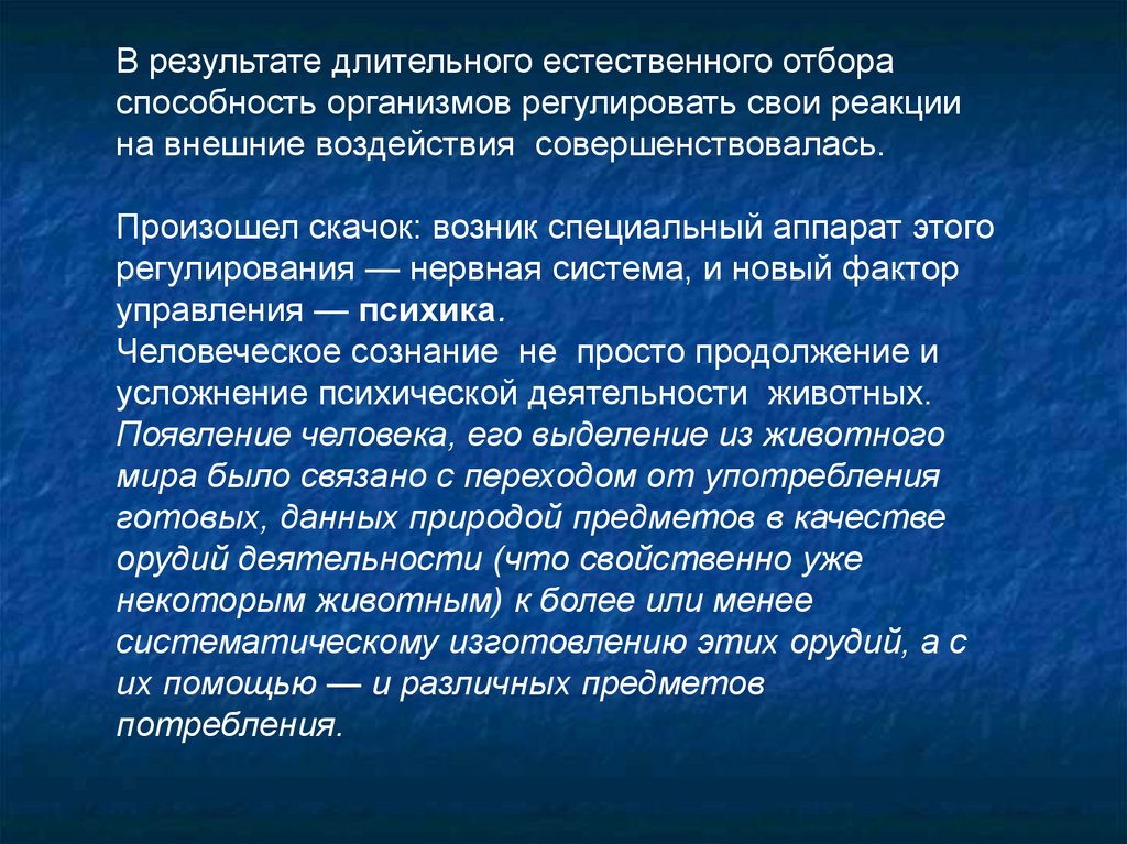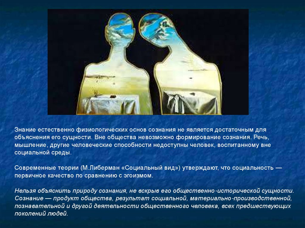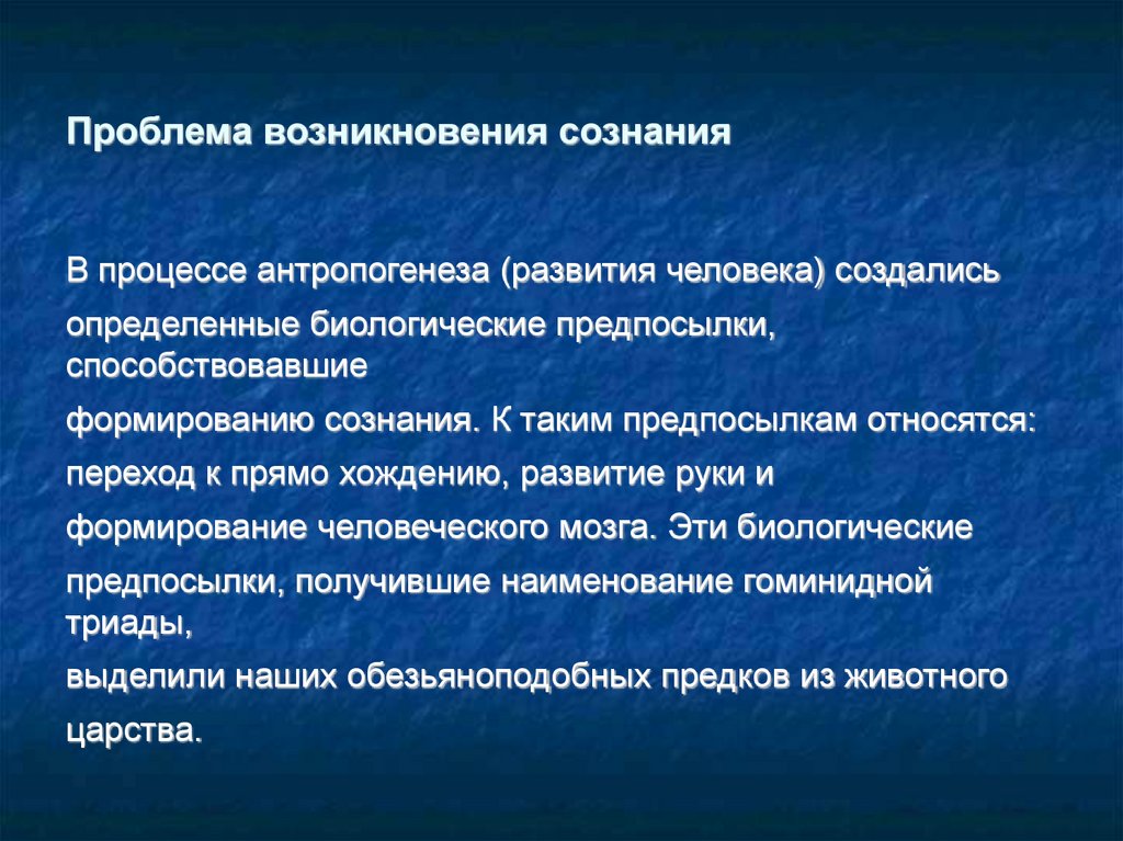 Проблема возникновения сознанияВ процессе антропогенеза (развития человека) создались