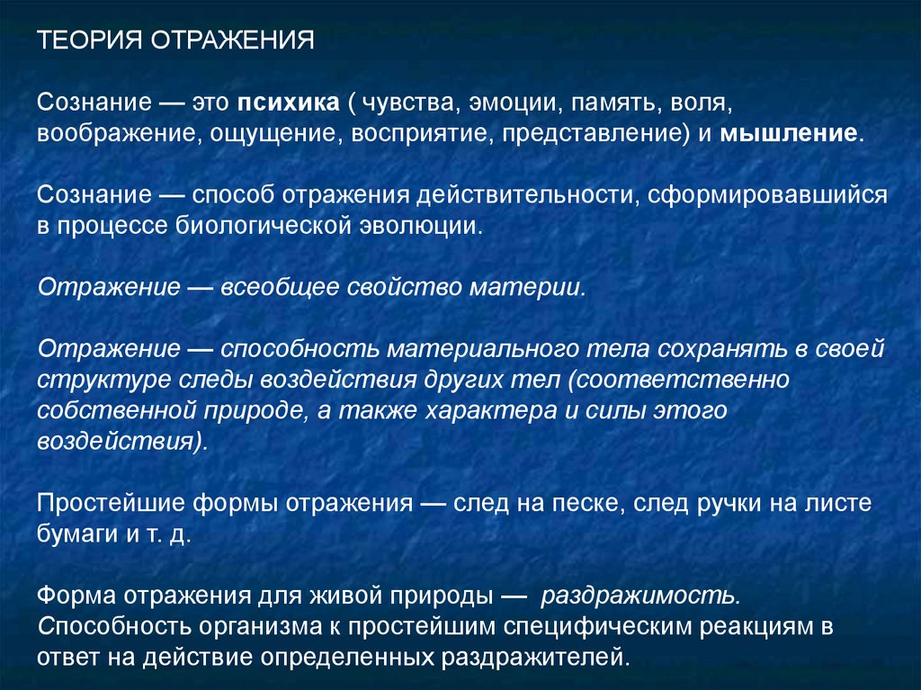материи, как функцию мозга, его способность формировать