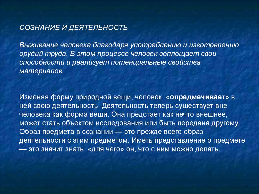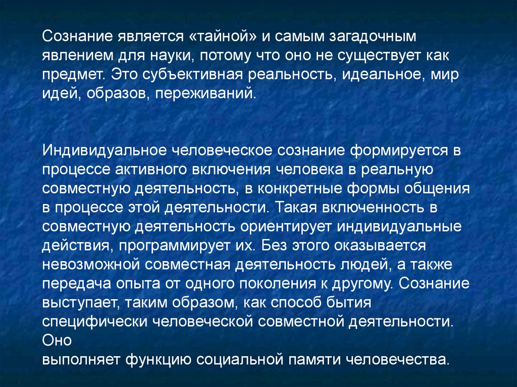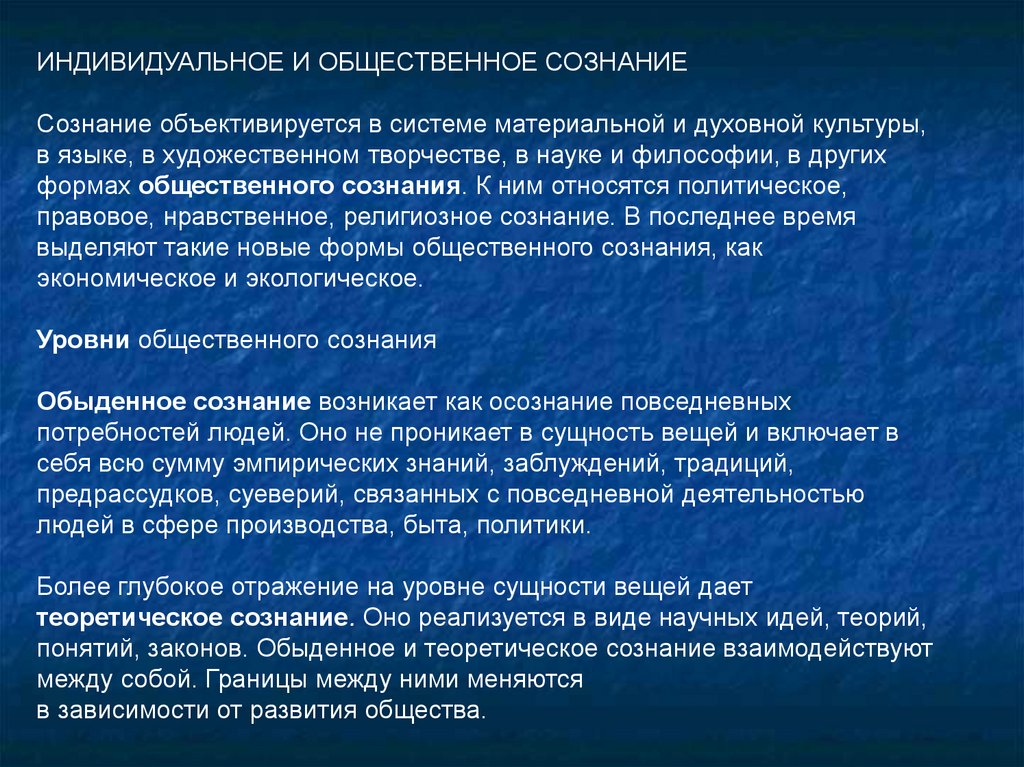 ИНДИВИДУАЛЬНОЕ И ОБЩЕСТВЕННОЕ СОЗНАНИЕСознание объективируется в системе материальной и духовной культуры,