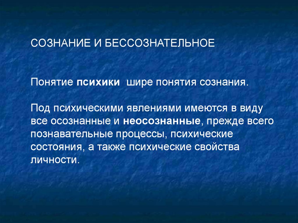 СОЗНАНИЕ И БЕССОЗНАТЕЛЬНОЕПонятие психики шире понятия сознания.