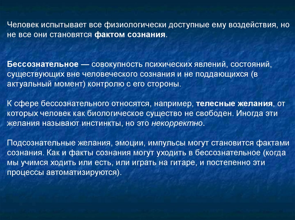 К сфере бессознательного относятся, например, телесные желания, от