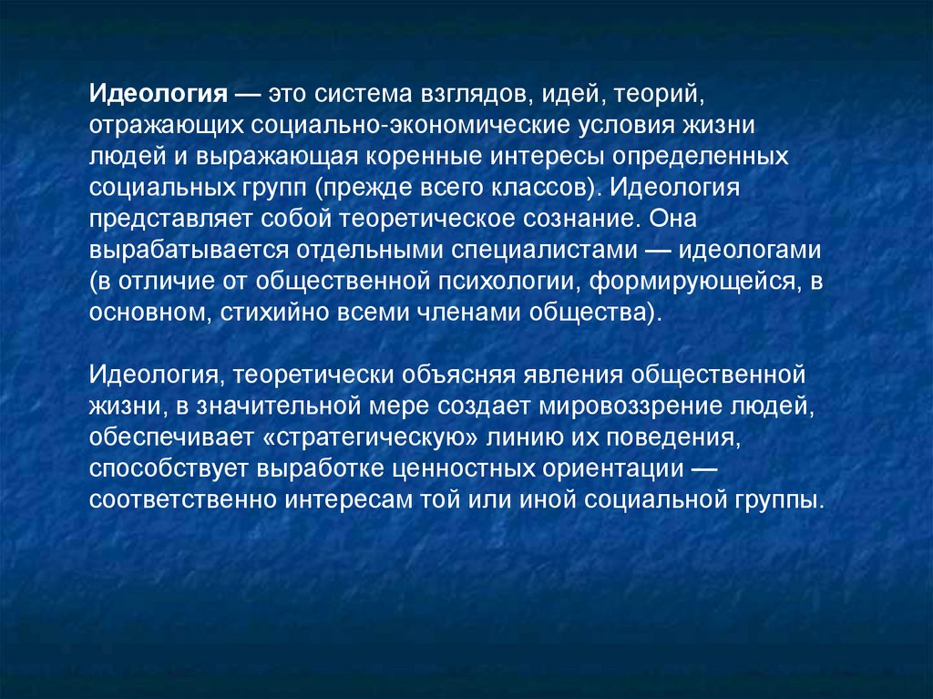 социальных групп (прежде всего классов). Идеология