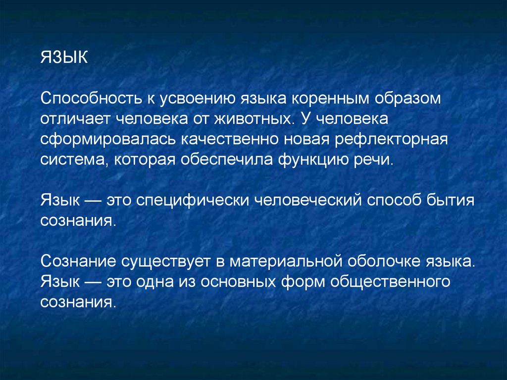 Язык — это специфически человеческий способ бытия