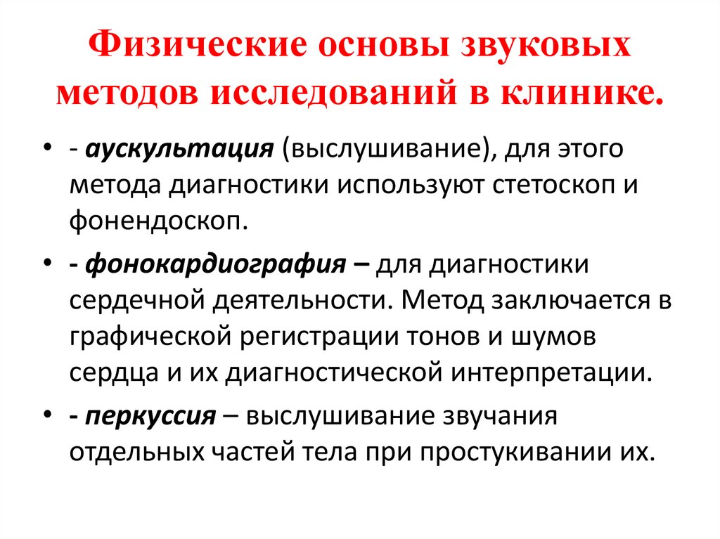 • - аускультация (выслушивание), для этогометода диагностики используют стетоскоп и