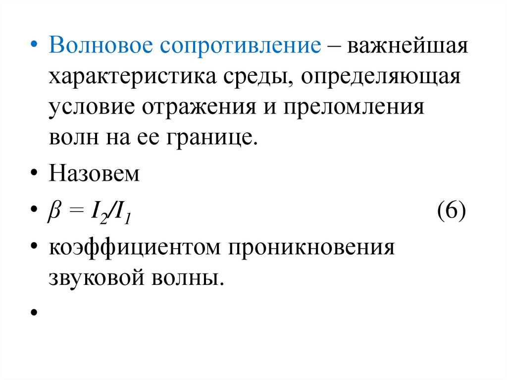 • Волновое сопротивление – важнейшаяхарактеристика среды, определяющая