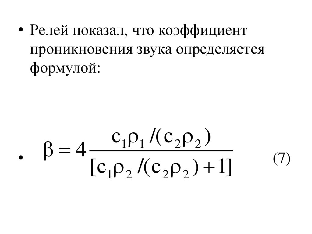 • Если с1ρ1>>с2ρ2, то вместо (7) имеем:
