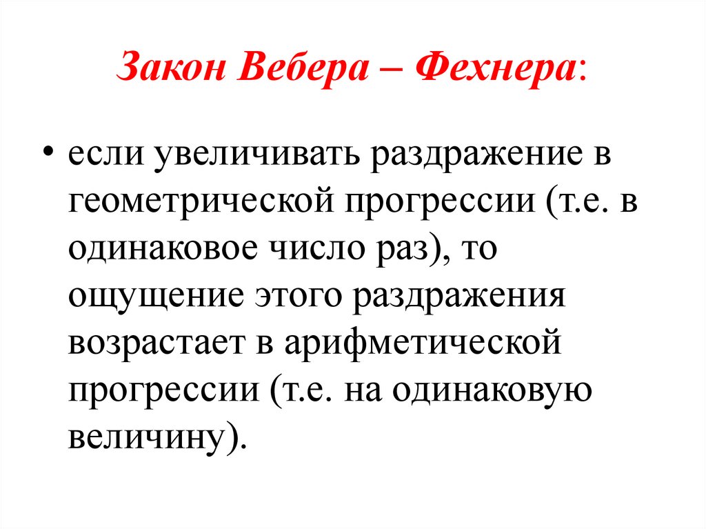 • если увеличивать раздражение вгеометрической прогрессии (т.е. в