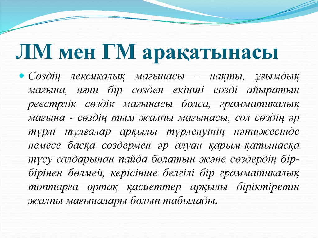 1.Грамматикалық мағына мен лексикалық мағынаныңарақатынасы.