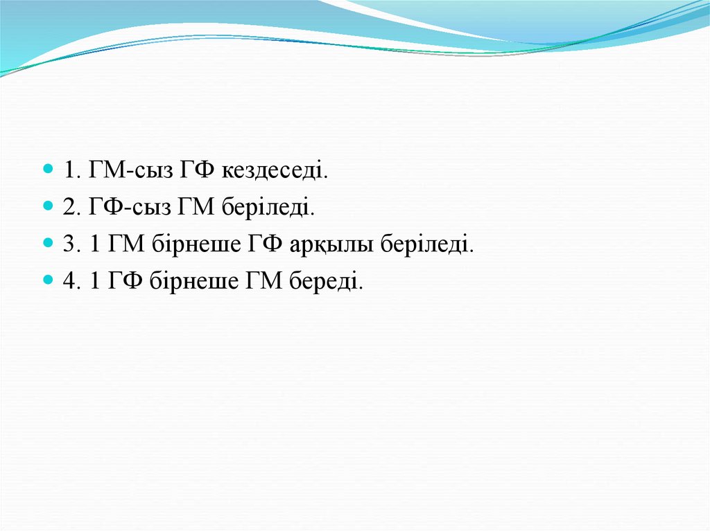 1. ГМ-сыз ГФ кездеседі.2. ГФ-сыз ГМ беріледі.