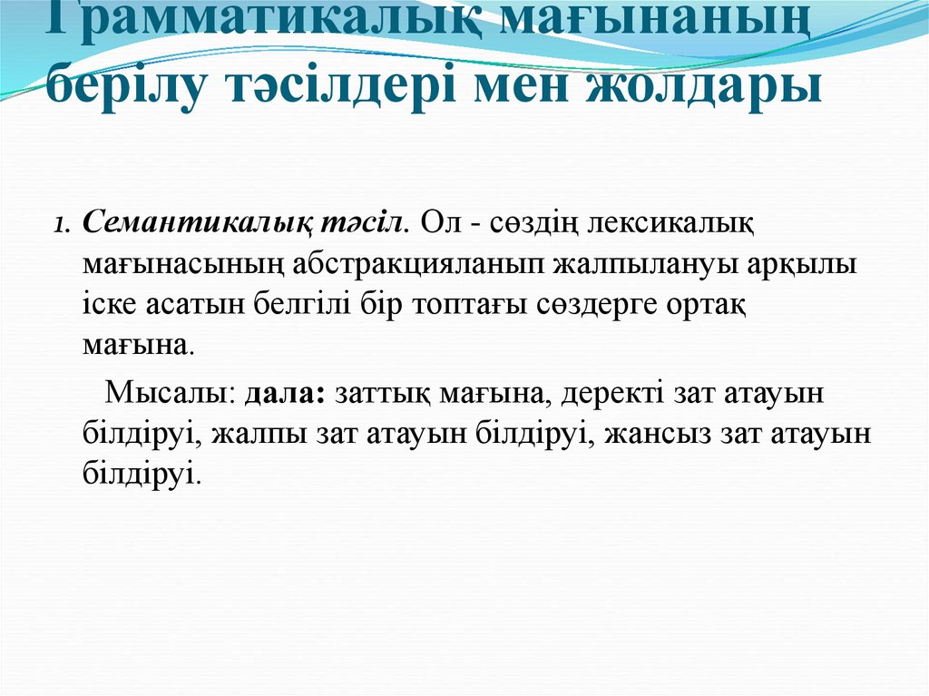 1. Семантикалық тәсіл. Ол - сөздің лексикалықмағынасының абстракцияланып жалпылануы арқылы