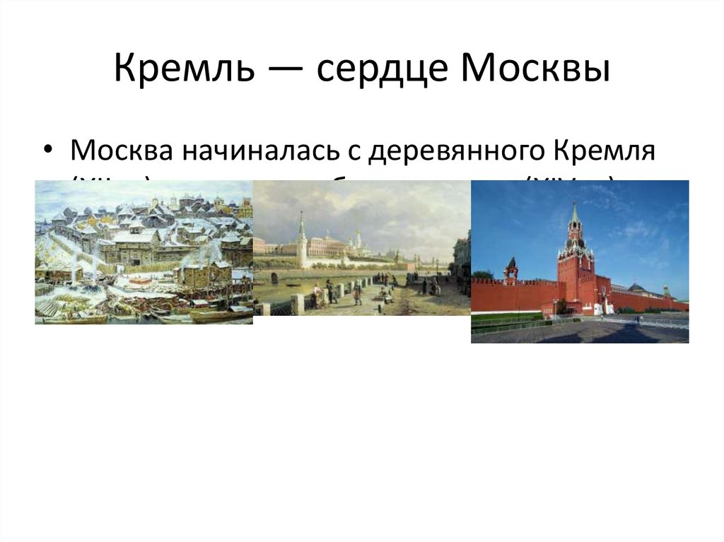 Кремль — сердце Москвы• Москва начиналась с деревянного Кремля