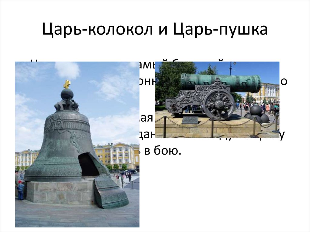 Царь-колокол и Царь-пушка• Царь-колокол — самый большой в мире,