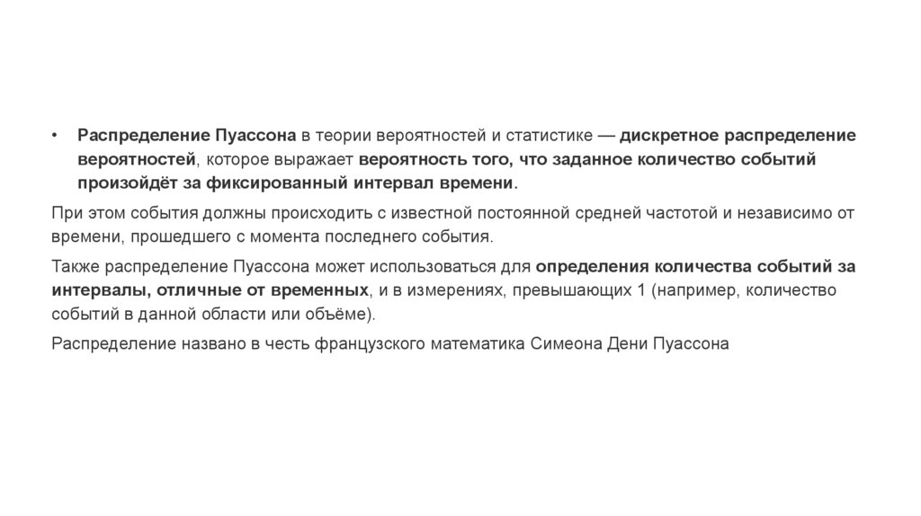Распределение названо в честь французского математика Симеона Дени Пуассона