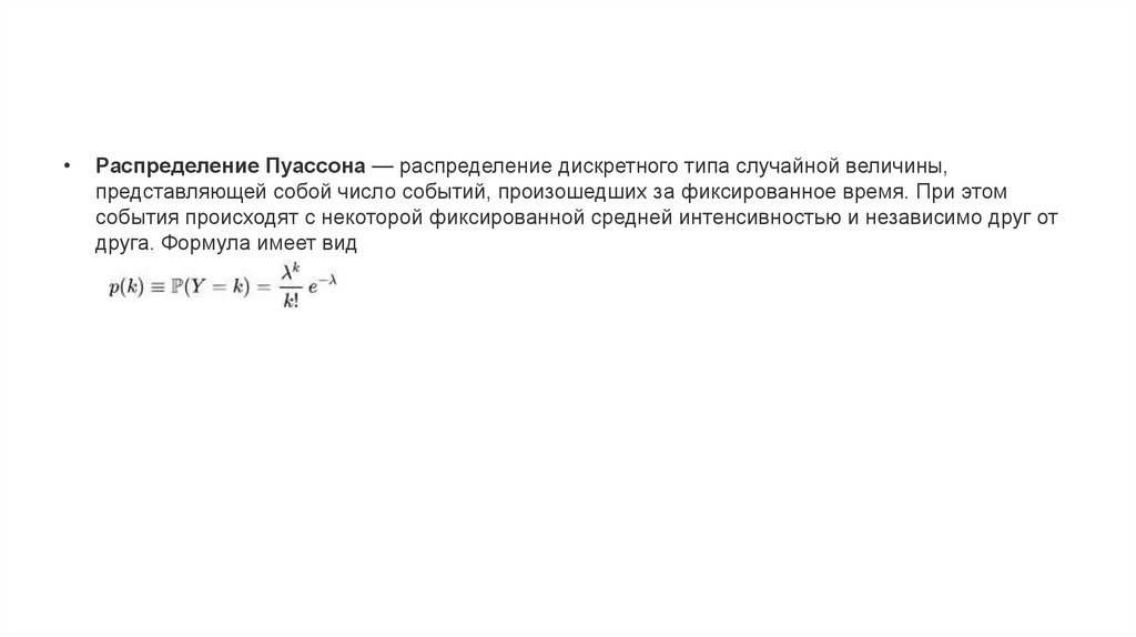Распределение Пуассона — распределение дискретного типа случайной величины,