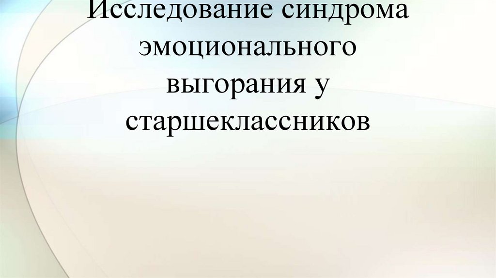 Исследование синдрома эмоционального выгорания у старшеклассников
