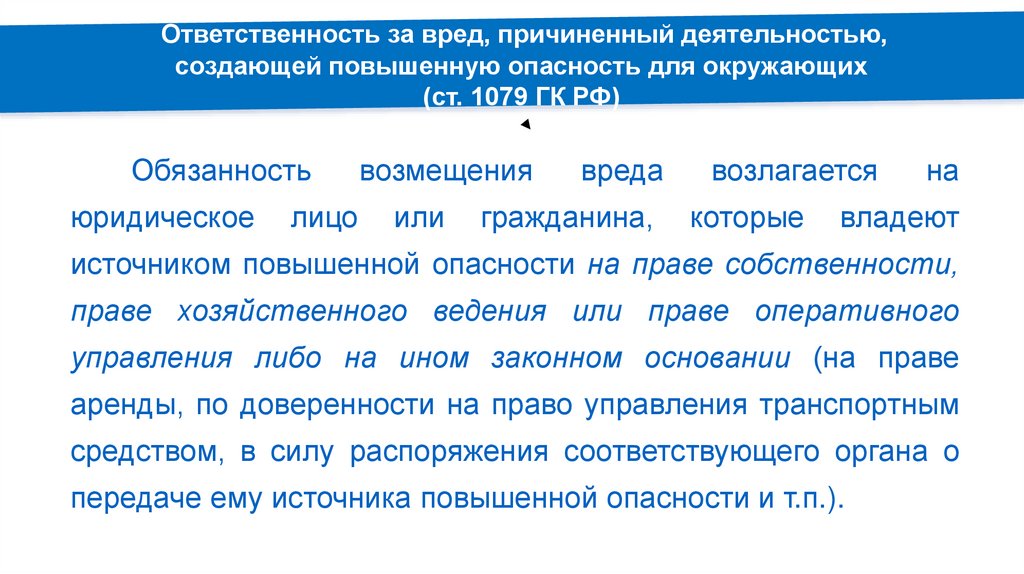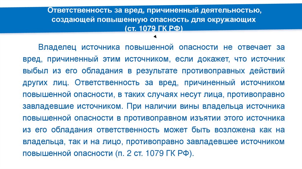 повышенной опасности (п. 2 ст. 1079 ГК РФ).