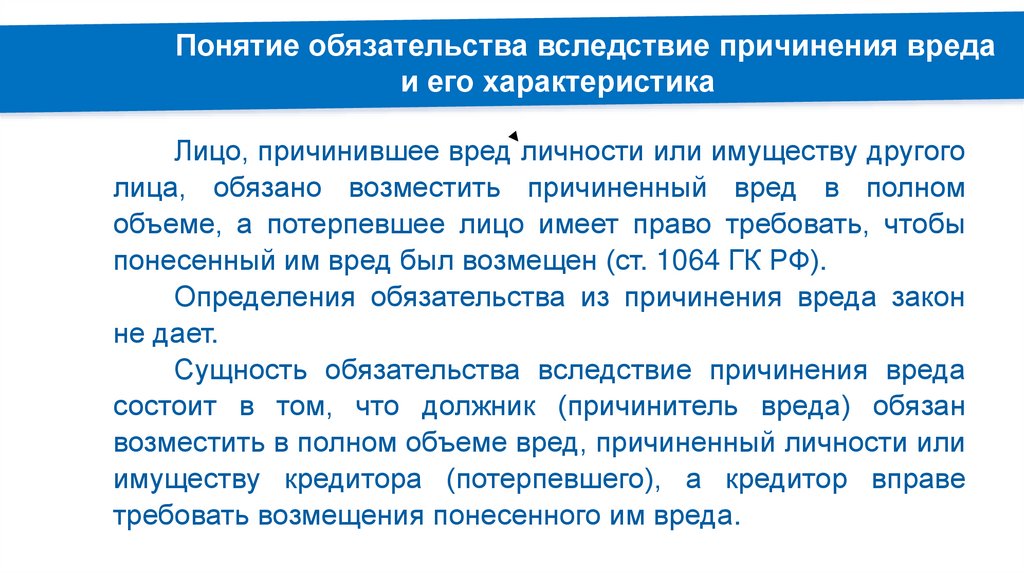 РЕМОНТ1. Понятие обязательства вследствие причинения вреда и