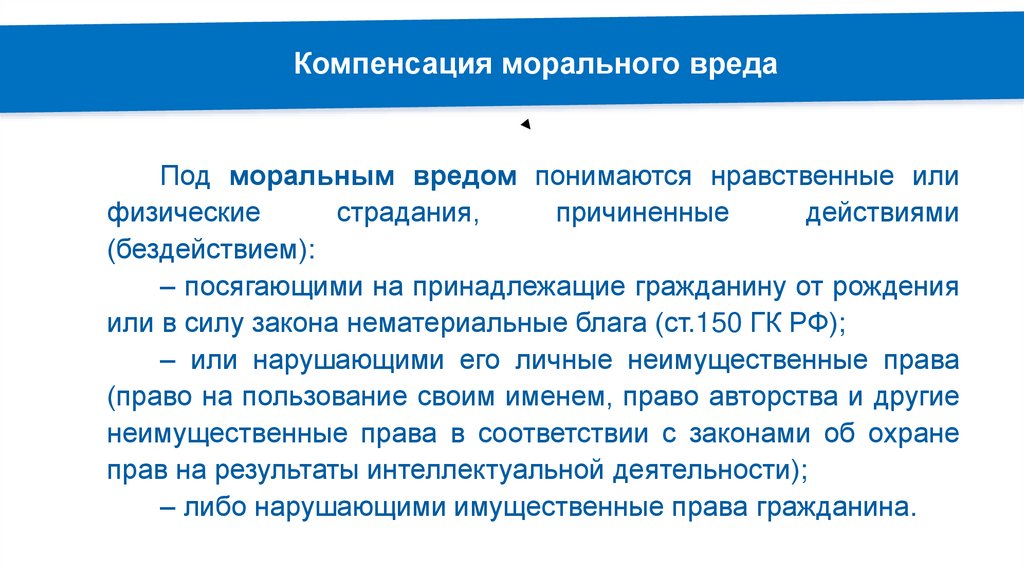 Моральный вред, причиненный действиями (бездействием), нарушающими